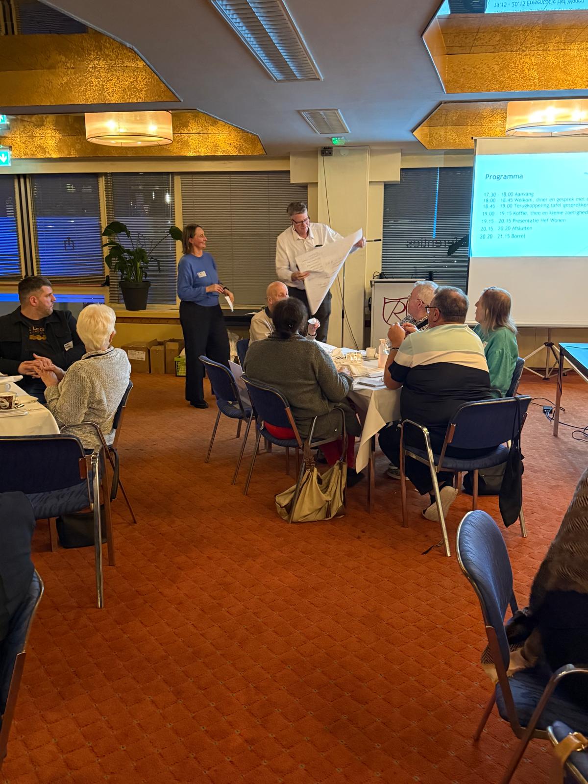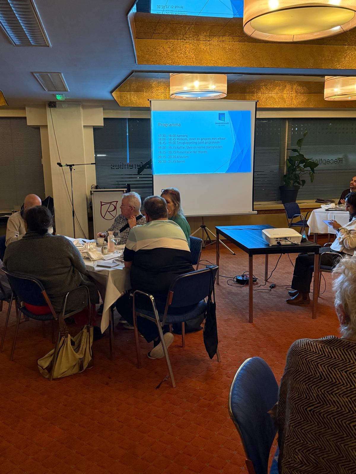 Op dinsdag 4 november vond de eerste themabijeenkomst plaats in zalencentrum Rustburcht. Aanwezig waren het bestuur van de Huurdersraad, drie medewerkers van Hef Wonen, leden van bewonerscommissies, klankbordgroepen en actieve huurders. De avond werd geopend door Tineke van Geest, voorzitter van de Huurdersraad Hef Wonen, en begeleid door Els de Smet. Vervolgens gingen huurders, samen met een bestuurslid aan tafel, in gesprek over verschillende vragen. Tijdens deze gesprekken werd een diner geserveerd. Na afloop van het diner presenteerden de groepen hun bevindingen aan de overige aanwezigen.
